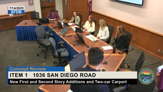 Design board backs concept for San Diego Road addition, asks applicant to study carport roof material