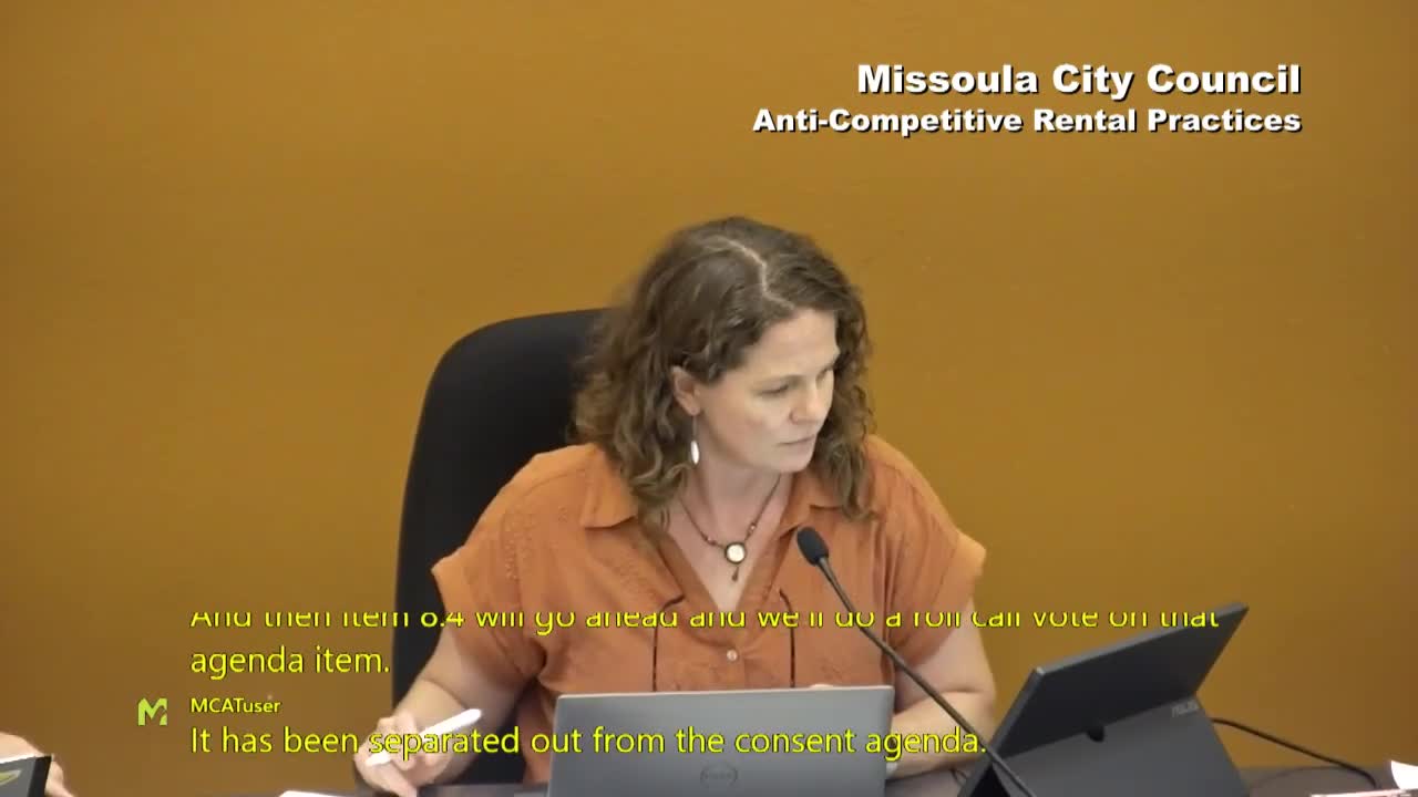 Missoula council adopts resolution opposing anti‑competitive rental algorithms, 8‑2