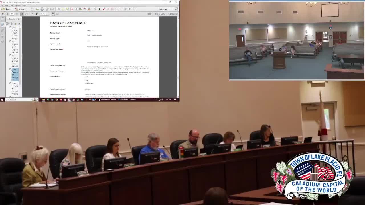 Lake Placid council sets proposed millage at 3.65 amid debate over reserves, CRA and service costs