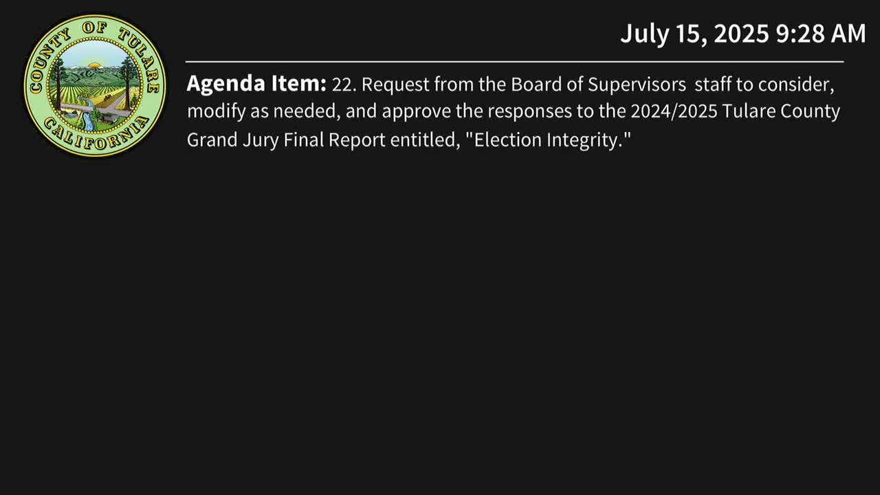 Board approves Tulare County response to grand jury 'election integrity' report; staff to publish fact sheet by January 2026