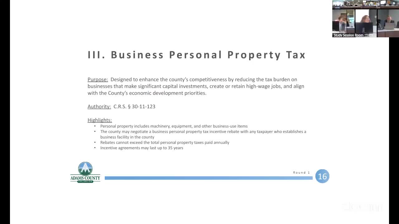 Adams County begins review of business personal property tax incentive; staff seeks values-based updates