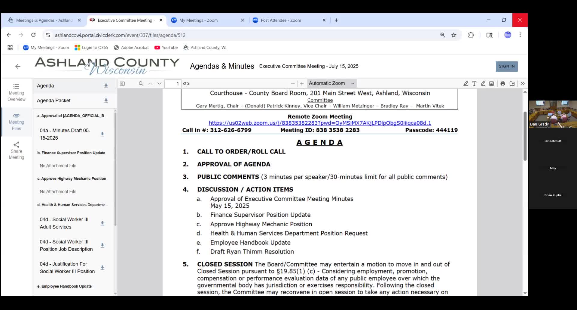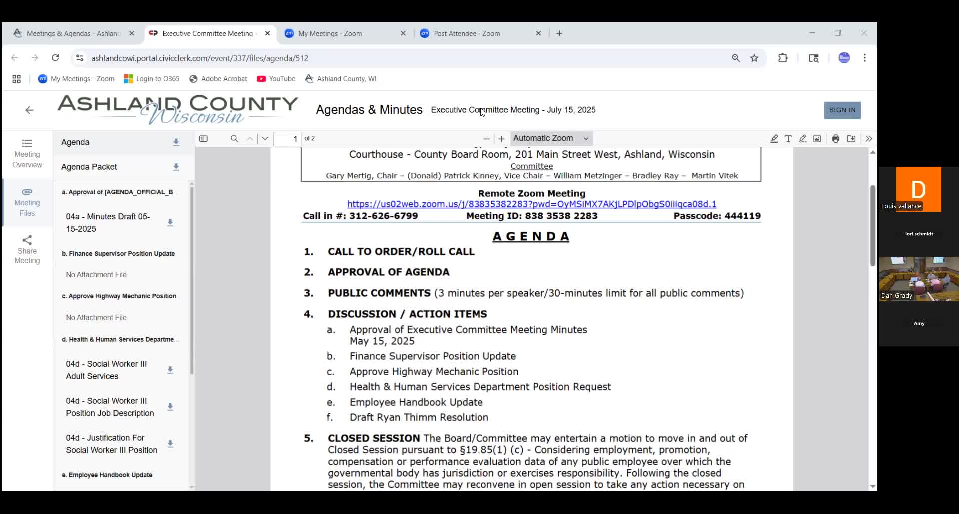 Executive Committee approves highway mechanic position after county hears applicant update