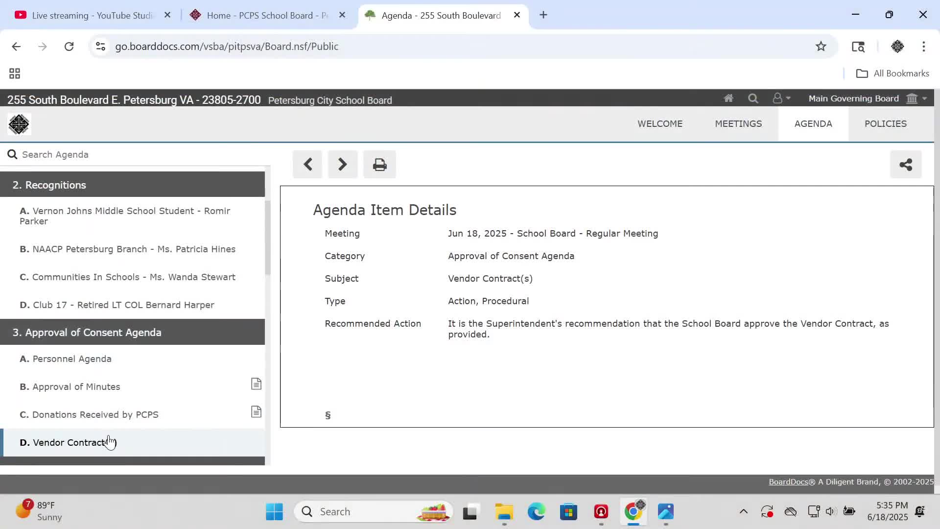 Votes at a glance: Petersburg school board actions, June 18, 2025