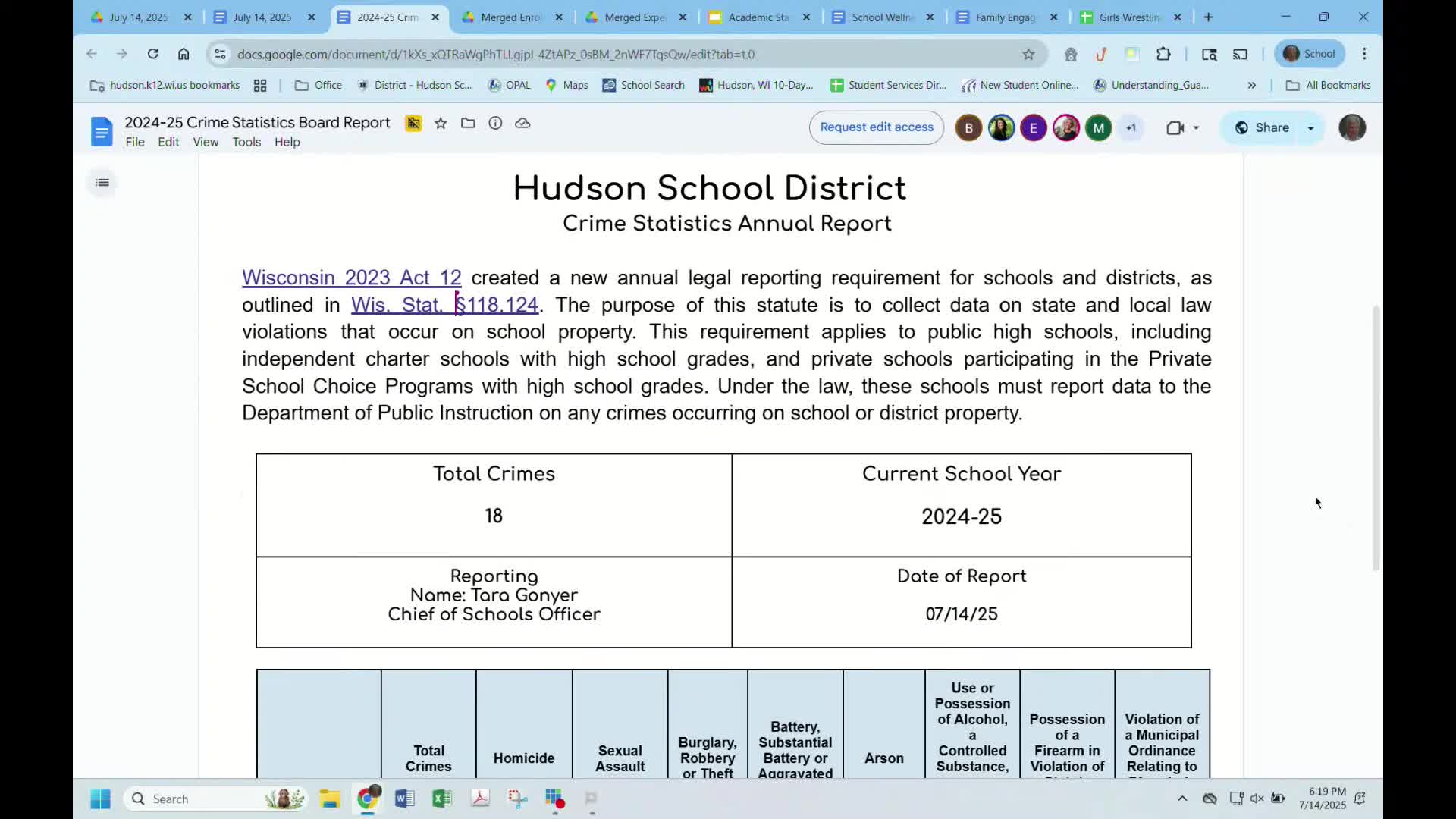 District reports 18 crimes on high-school property under Wisconsin Act 12