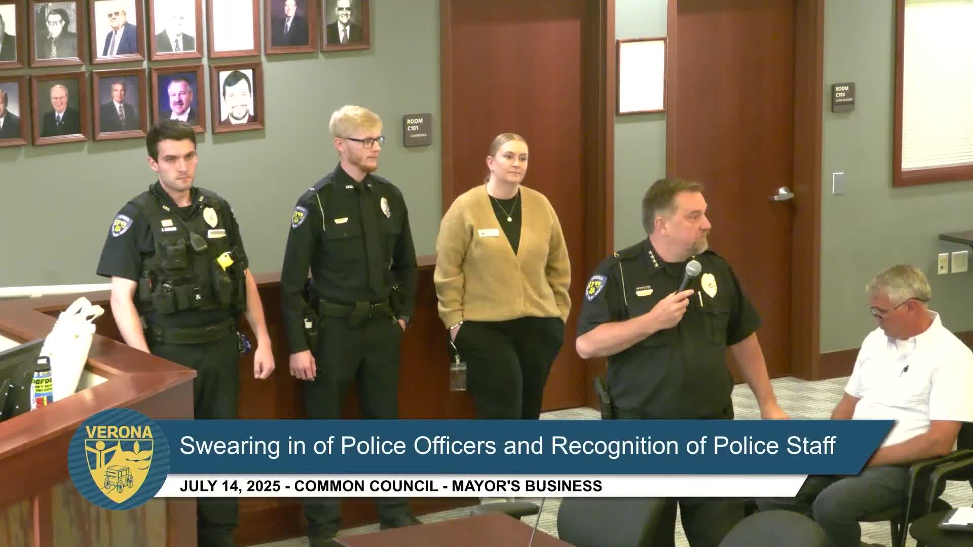 Verona swears in three new police department staff and recognizes new clerical hire