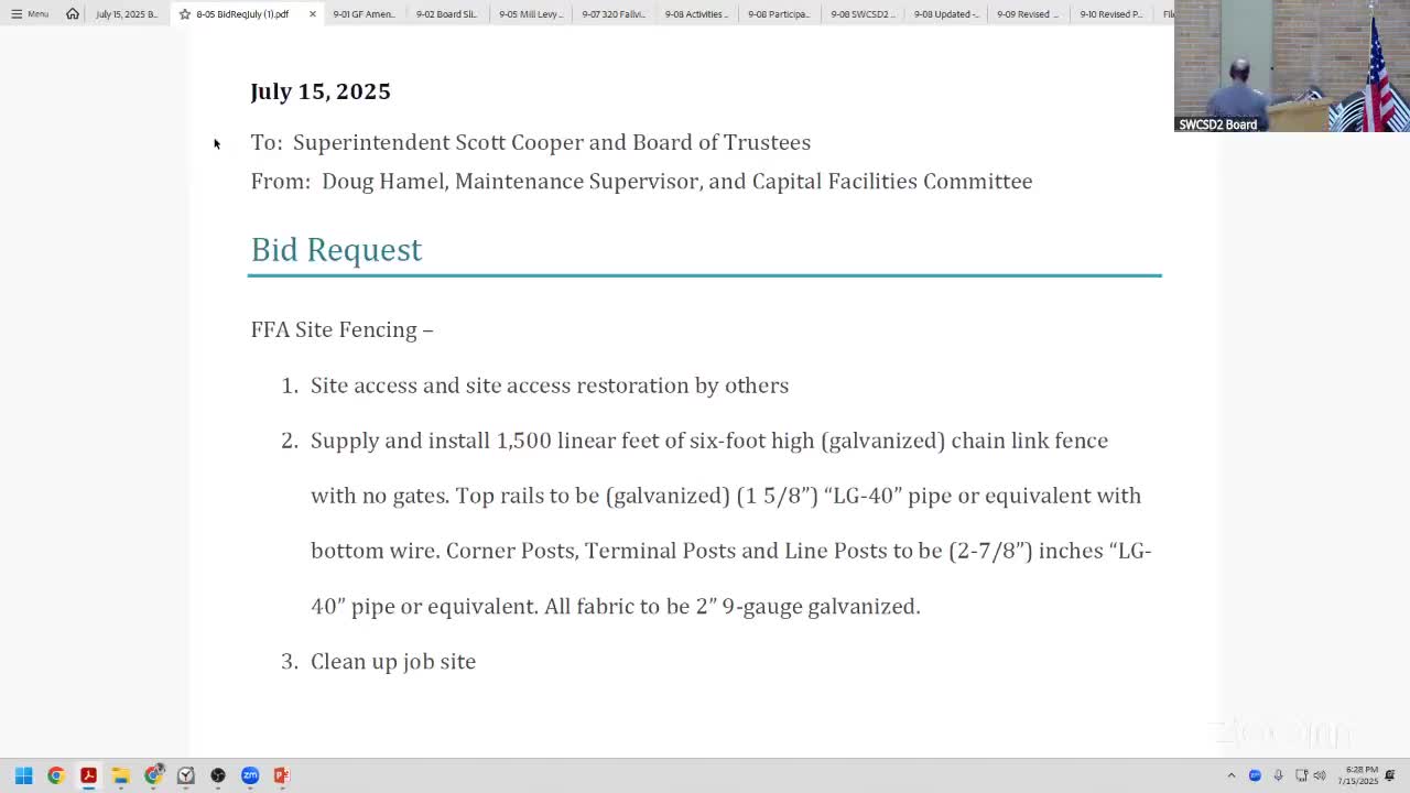 Trustees approve bid process for FFA fencing and approve quitclaim deed for adjacent property