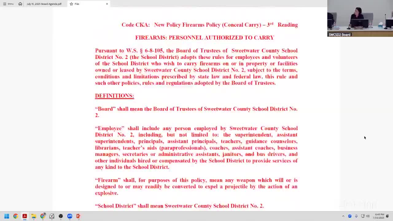 Board adopts new concealed-carry policy for authorized personnel with training requirements