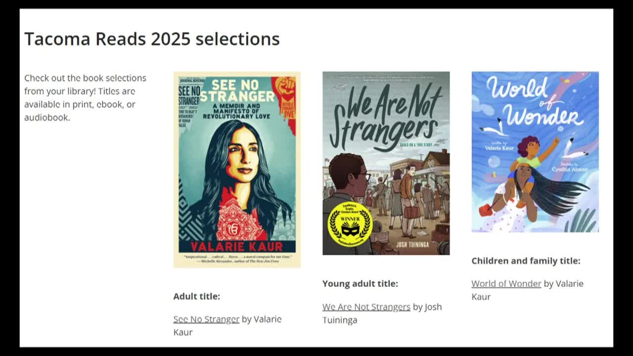 Tacoma Public Library unveils Tacoma Reads 2025; Mayor to welcome author Valerie Kaur Oct. 16