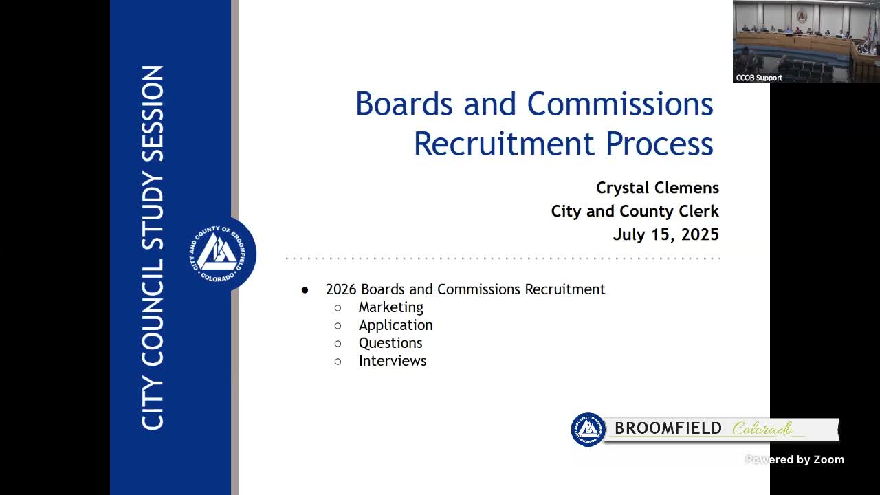 Broomfield streamlines boards-and-commissions recruitment; council opts for in‑person interviews on select policy boards