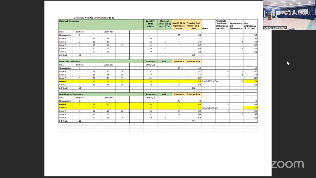 School committee approves additional grade 2 section at West Kingston, funded from FY2026 contingency