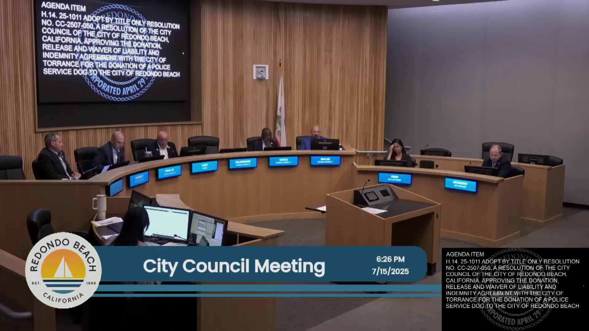 Council accepts donation of police service dog from Torrance; Max to join Redondo Beach PD
