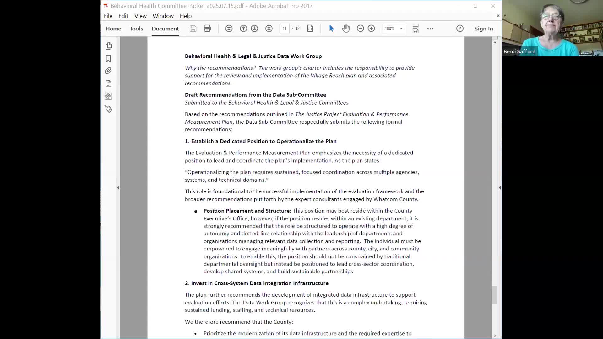 IPRTF approves data workgroup recommendation to fund a county position for performance measurement