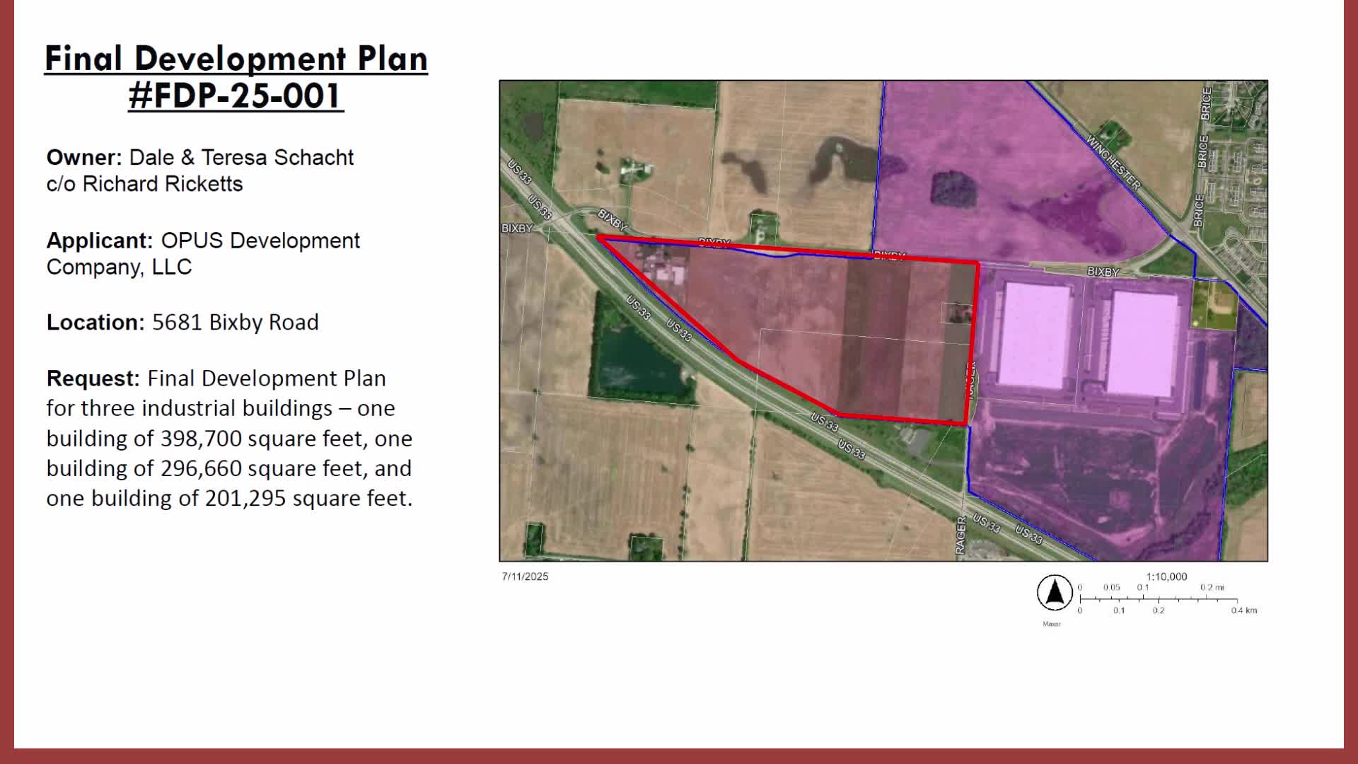 Commission conditionally approves large industrial final development plan; developer to fund major road and utility improvements