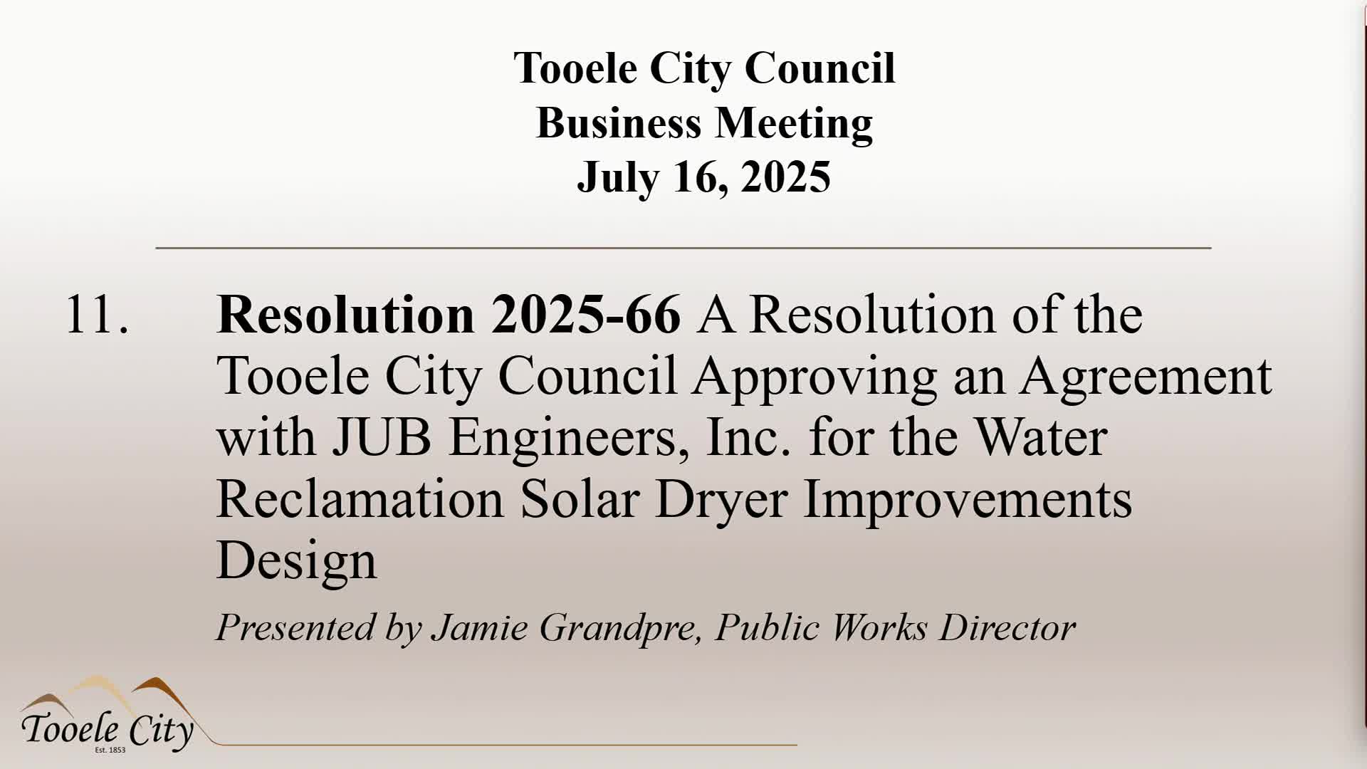 Tooele City to design retrofit of water-reclamation solar dryer; council approves $593,300 contract for engineering