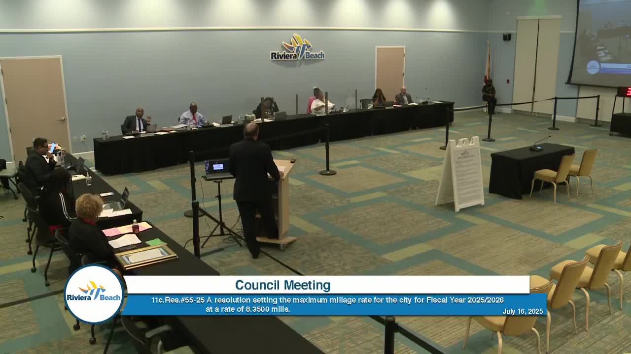 Council sets maximum millage rate at 8.35 mills for FY2025‑26, schedules first hearing for Sept. 3