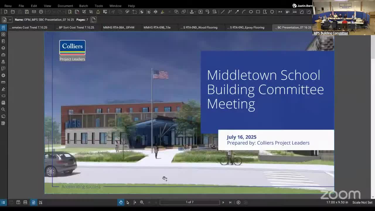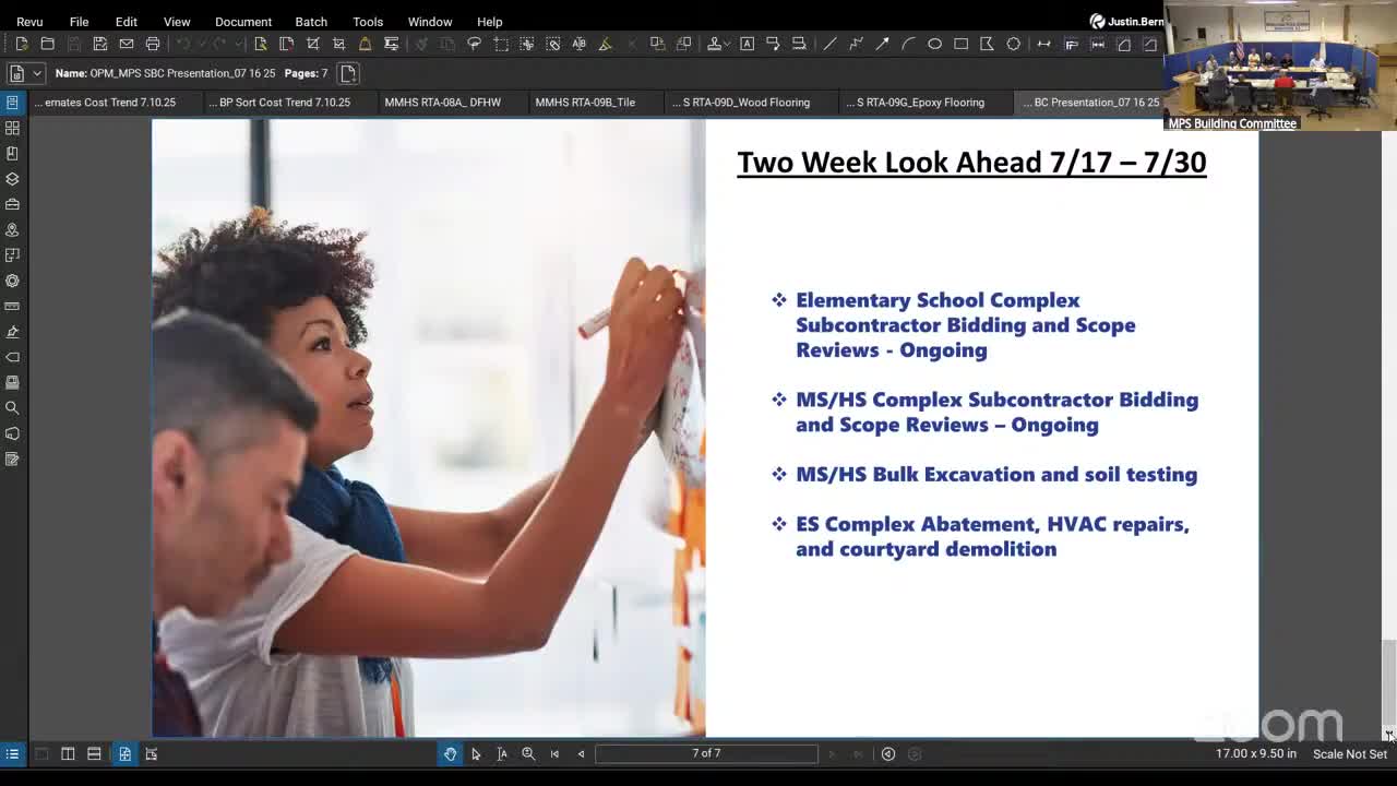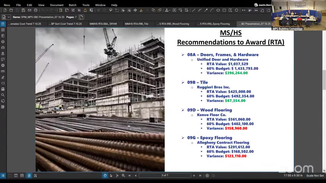 Committee approves several trade awards for middle‑high school; GMP trending near $130.6M, soil testing shows limited contamination
