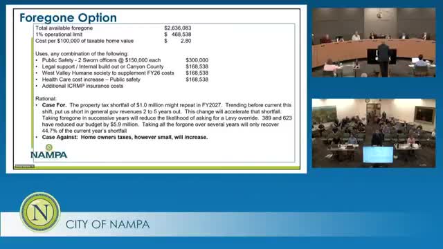 Nampa council votes to use 1% "foregone" levy option, mayor breaks tie