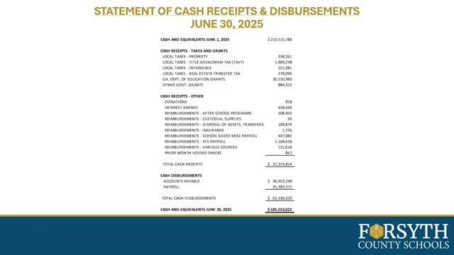 Finance report: district cash up from last year but federal funds delayed; SPLOST timing clarified