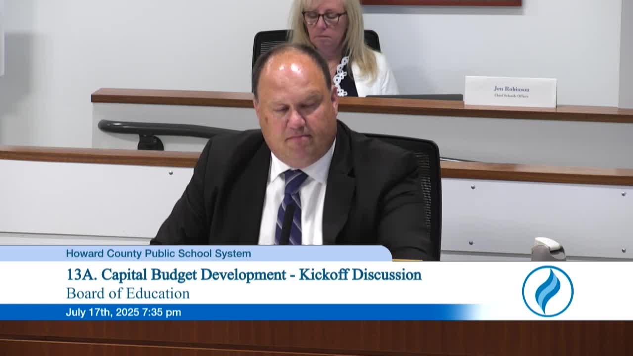 District begins FY2027 capital‑budget planning; state cost‑share for Howard County drops to 50%