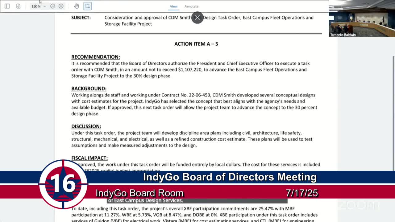 IndiGo board approves $1.11 million task order to advance East Campus design; further work tied to USDOT grant