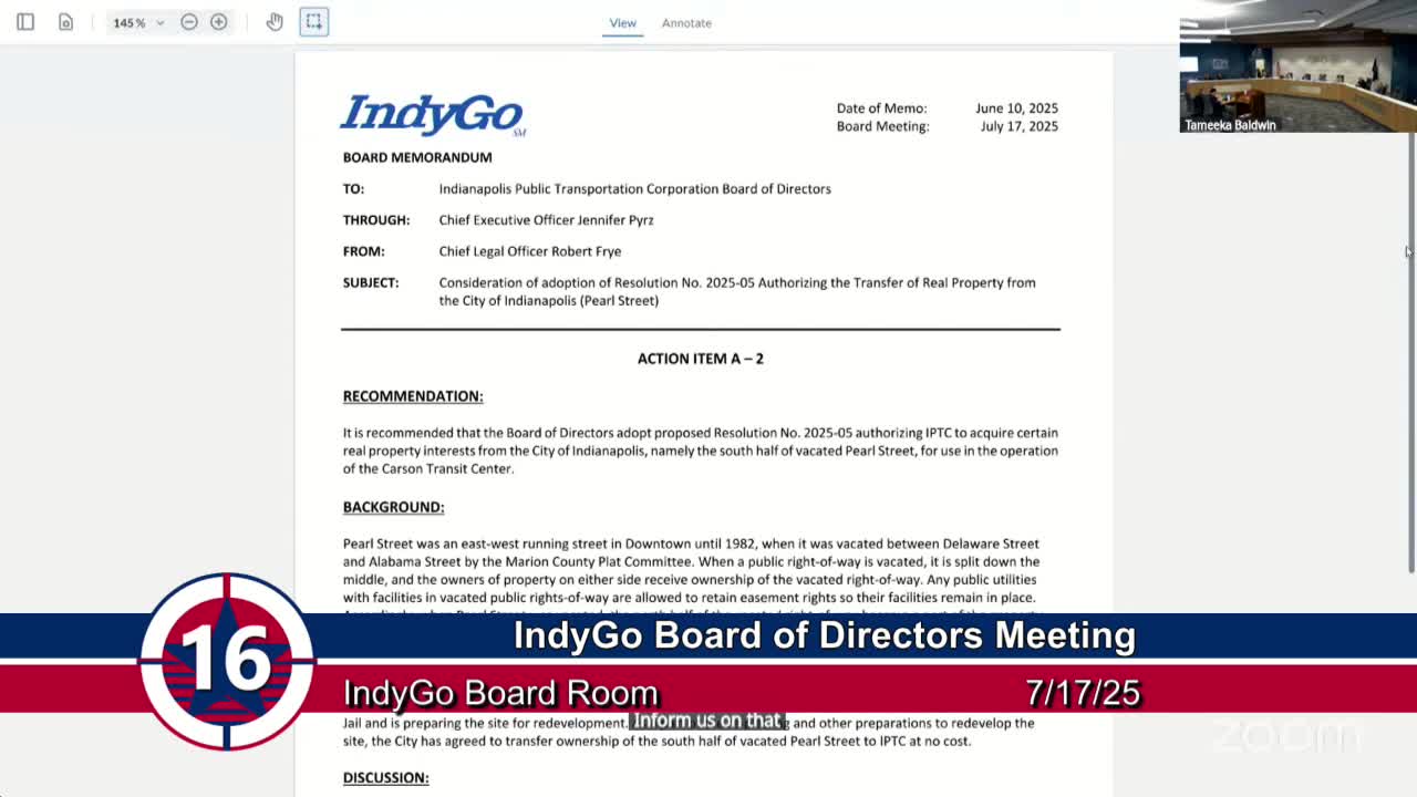 IndiGo board approves transfer of south half of vacated Pearl Street from City of Indianapolis