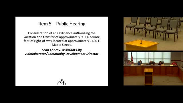 Council considers vacation and transfer of roughly 9,000 sq ft of right-of-way at 1480 E. Maple Street