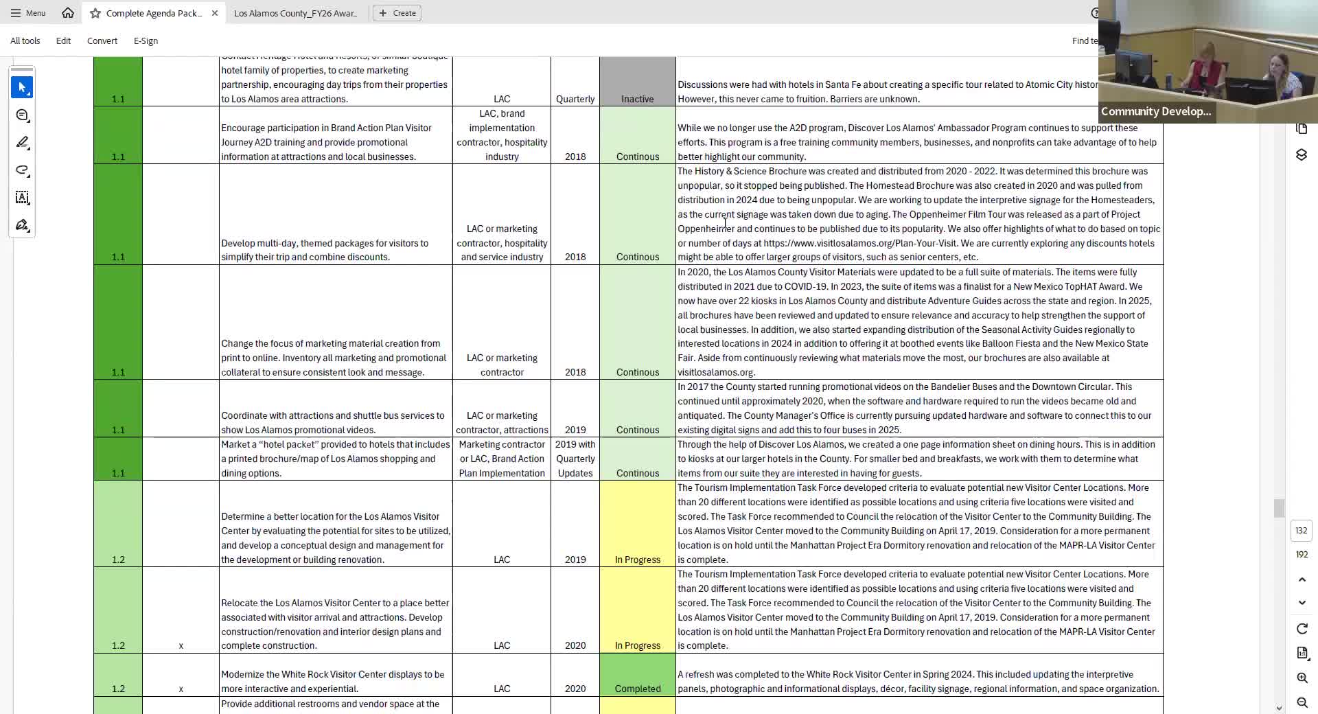 County staff reports mixed progress on tourism strategic plan; visitor‑center, wayfinding and shuttle projects remain active