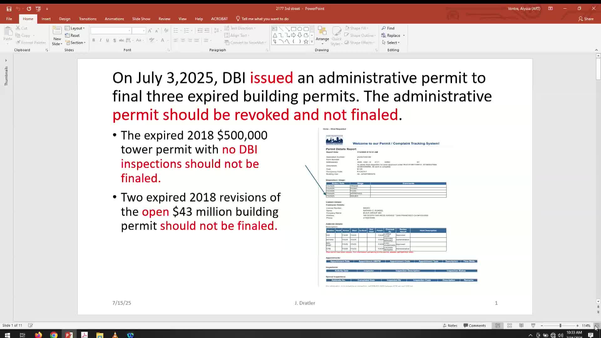 Public commenter accuses DBI of finaling expired downtown permits and issuing TCOs without required inspections