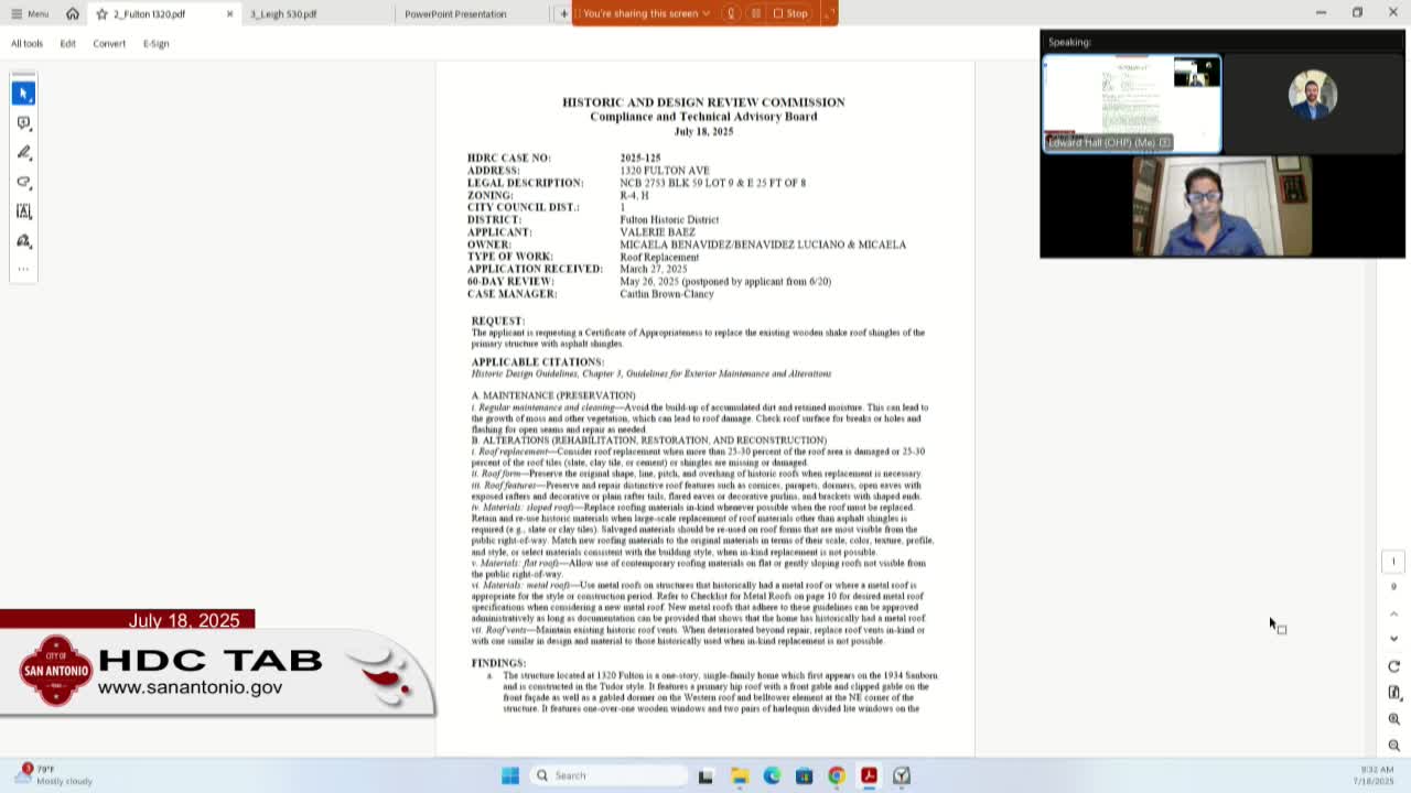 Board allows synthetic or similar roofing at 1320 Fortune Ave., with stipulations to match wood‑shake appearance