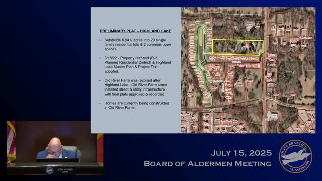 Board approves preliminary plat for Highland Lake subdivision; public streets replace planned gated community