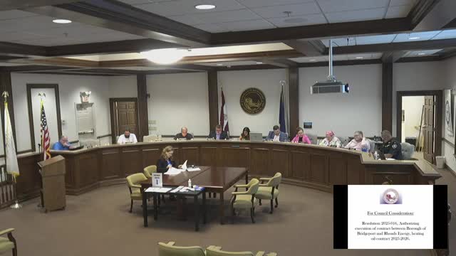 Bridgeport council authorizes heating‑oil contract with Rhodes Energy for borough facilities