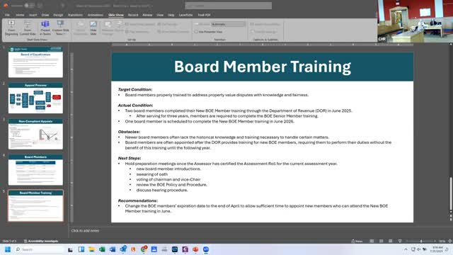 Clerk outlines Board of Equalization appeals process, training gaps and recommendation to shift appointment timing