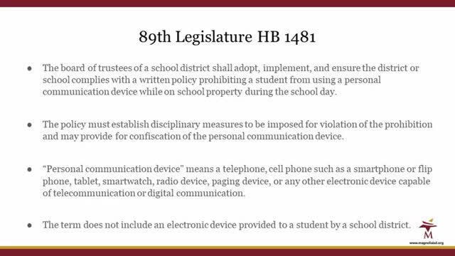 Trustees adopt local policy banning personal devices during school day to comply with new state law