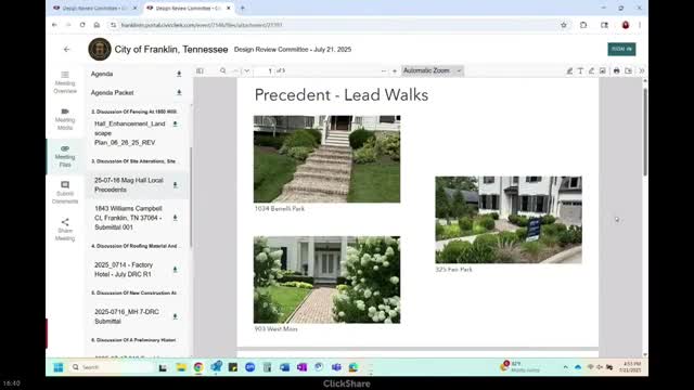 DRC critiques Harpeth Village mixed‑use plan: staff calls for significant redesign; commissioners seek lighter materials and reduced visibility of parking