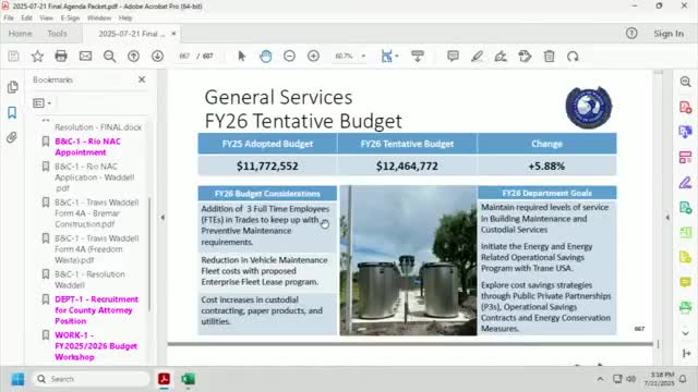 Utilities and Solid Waste tentatively approve FY26 budget; solid‑waste assessment rises about $19.68 per parcel