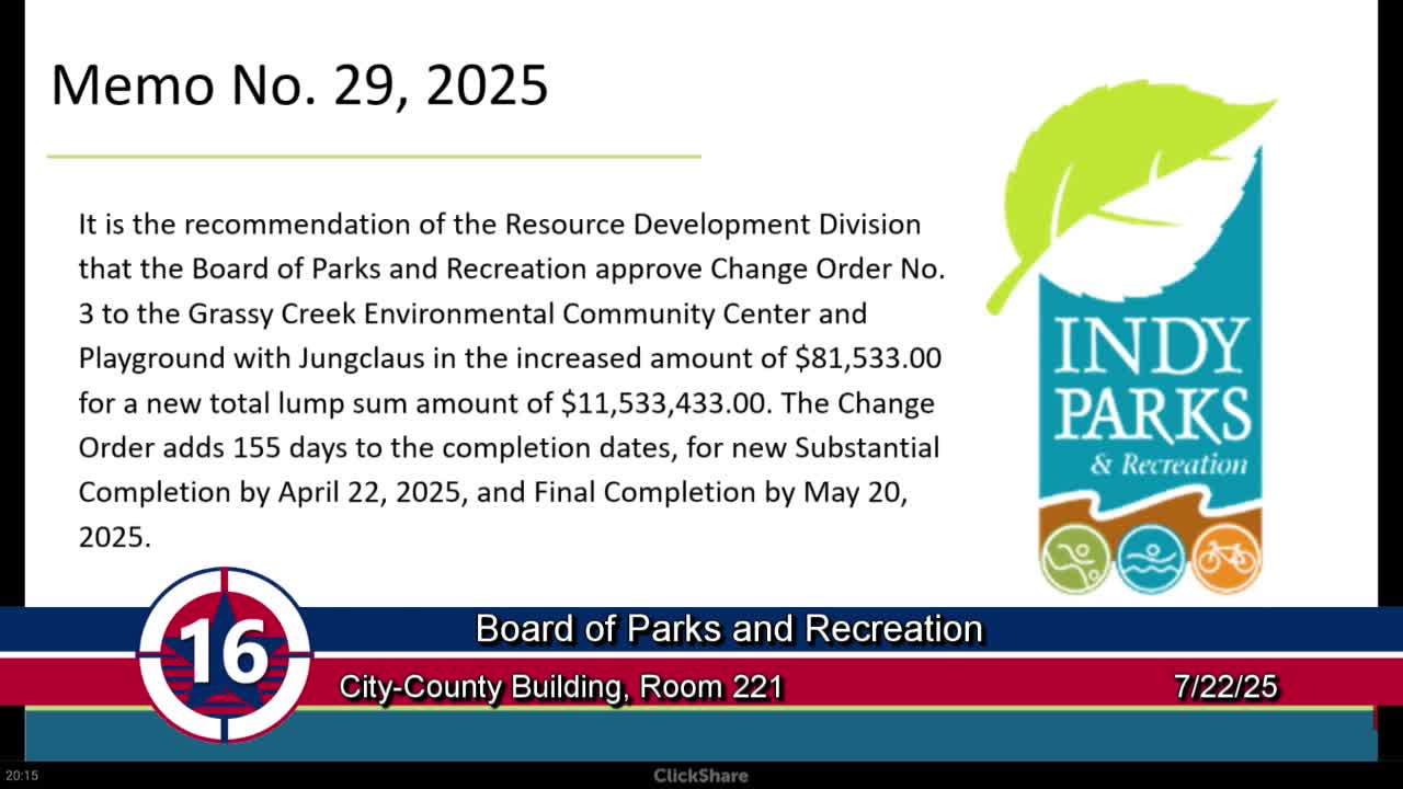 Indy Parks approves change orders for Grassy Creek and playground/splash-pad projects