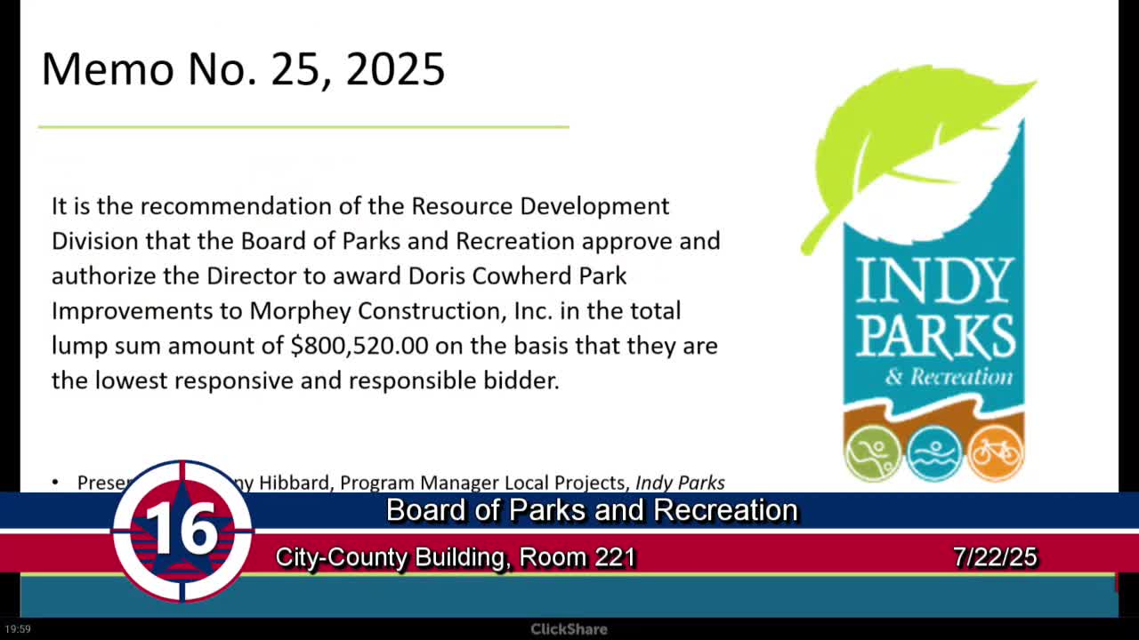 Indy Parks board awards multiple park construction contracts totaling several million dollars