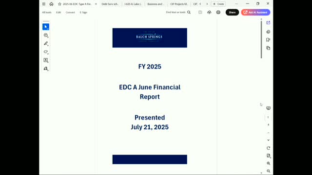 Balch Springs EDC (Type A) receives FY2025-26 budget update; city staff projects $3.39 million year-end balance