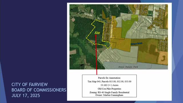 Fairview annexes 53.162‑acre Old Cox Pike tract over neighborhood objections