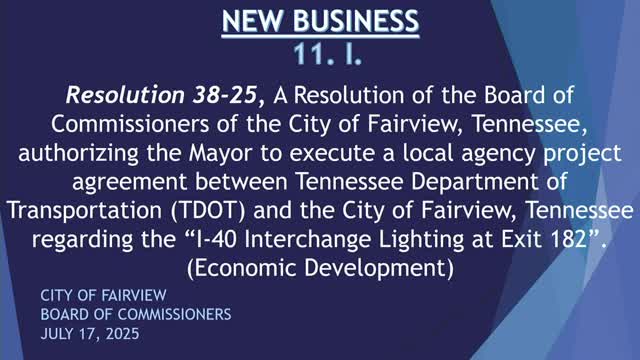Fairview approves $1M match for I‑40 Exit 182 lighting; board asks for crash data and schedules workshop