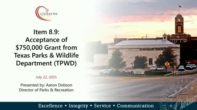 Cleburne accepts $750,000 TPWD grant for Lakeshore Park improvements; bids to open mid-August