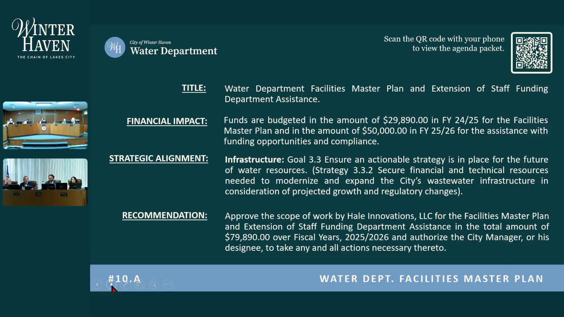 City seeks Hale Innovations contract for facilities master plan to support SRF and DEP funding
