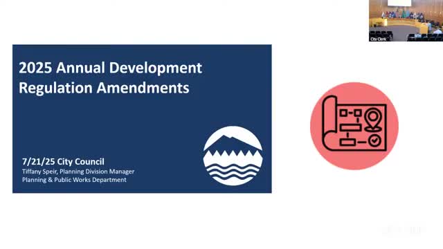 Planning staff propose 16 annual development‑code amendments including brewery rules, mixed‑use clarifications and 'iconic sign' standard