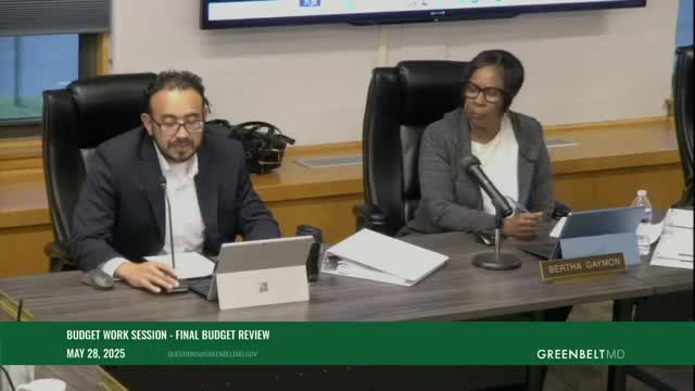 Greenbelt council inches toward balanced $40.2 million general‑fund budget; final vote set for Monday