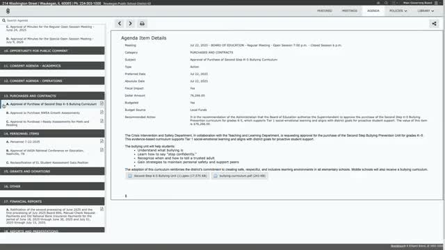 Waukegan board approves $76,266 anti‑bullying curriculum for K–5