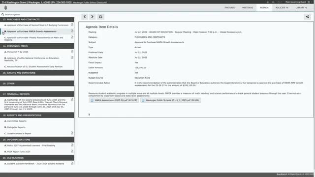 Board renews NWEA and i‑Ready assessment contracts, agrees to reduce testing overlap