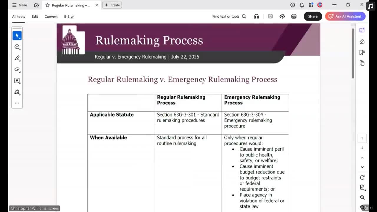 Committee reviews emergency-rule use after lapses at AG and Risk Management; staff cite notification failures