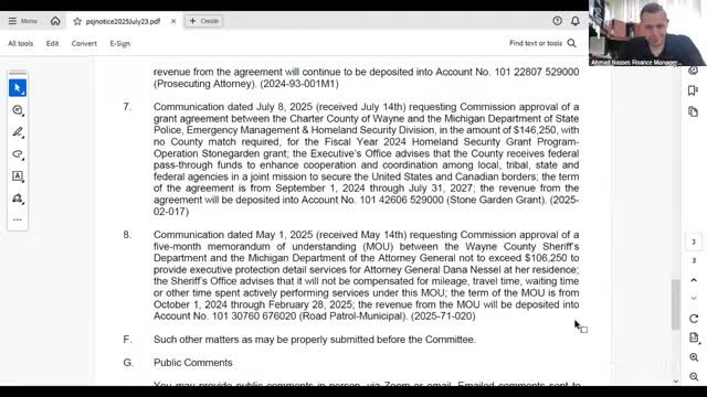 Wayne County approves retroactive MOU to invoice state for executive protection of Attorney General; audit questions raised