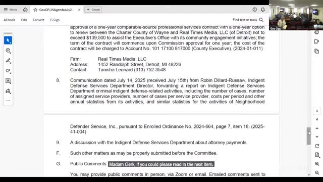 Wayne County committee approves Greektown parking deal, signs off on multiple contracts, tables two media agreements and reviews indigent defense report