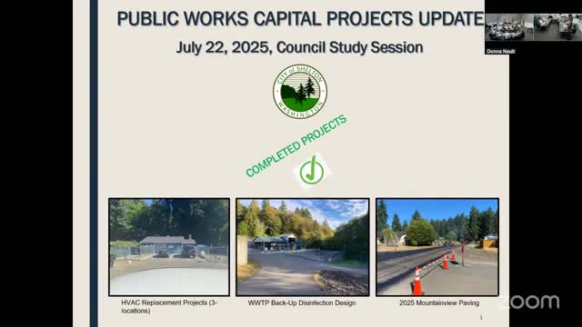 Shelton updates council on water and wastewater projects including peracetic‑acid backup design and storage plans